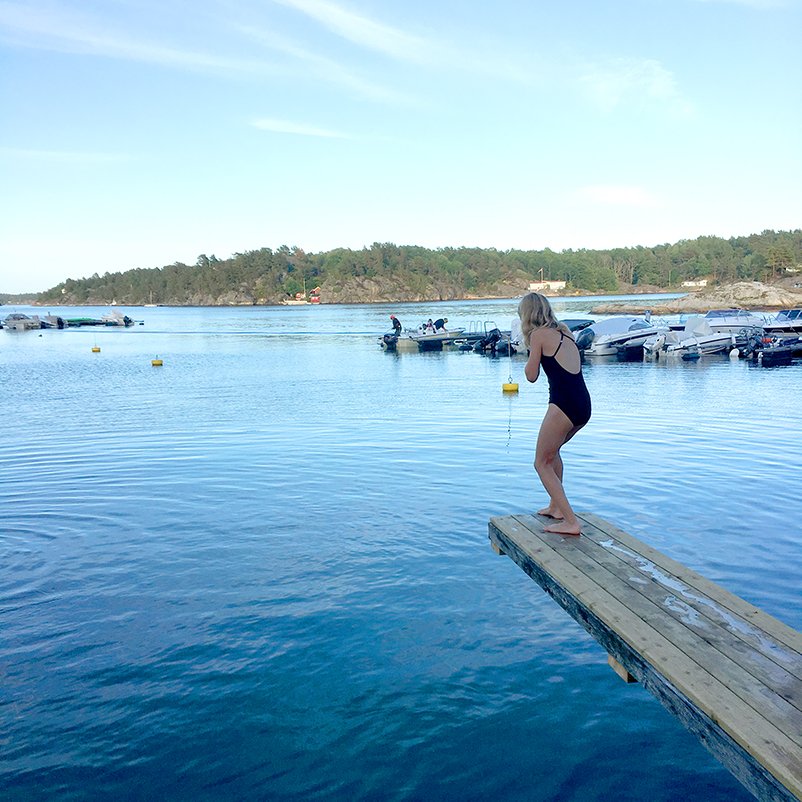 (That's Mimi's cousin Miriam, about to jump into the fjord in Kragerø)