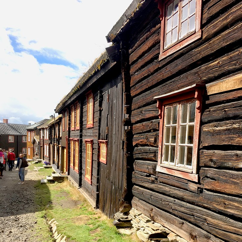 (A street in the village of Røros. I think these houses are, for historical preservation purposes, not allowed to be altered and are pretty much in their original condition. They are tiny inside and the roofs are quite low.)